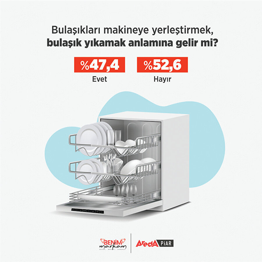 Bu alışkanlığın çok yaygın olduğu göz önüne alınarak araştırmada katılımcılara yöneltilen “Bulaşıklarınızı makineye nasıl koyuyorsunuz?” sorusuna yüzde 52,7 yıkayıp duruladıktan sonra, yüzde 25,1 su değdirmeden olduğu gibi, yüzde 14,2 sadece sudan geçirerek, yüzde 8,1’i el deterjanı ile temizledikten sonra cevabını verdi.