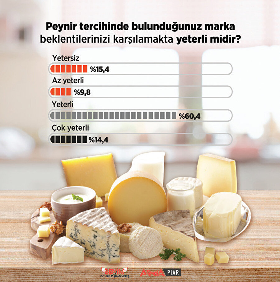Araştırmada ayrıca, “Peynir tercihinde bulunduğunuz marka beklentilerinizi karşılamakta yeterli midir” şeklinde oldukça kritik bir soru yöneltildi. Tüketicilerin markalar hakkındaki görüşlerine ışık tutan soruya, vatandaşların yüzde 60.4’ü yeterli yanıtı verdi. Aynı soruya vatandaşların yüzde 14.4’ü çok yeterli derken, yüzde 9.8’i az yeterli, yüzde 15.4’ü yetersiz cevabı verdi.