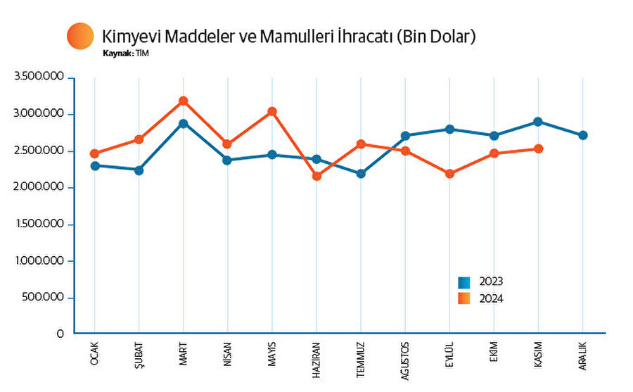 Sektör, 2025 yılına ihracat odaklı büyüme, katma değerli üretim ve yeşil dönüşüm hedefleriyle büyük bir potansiyel barındırarak giriyor. Ancak sektör, döviz kurlarındaki belirsizlikler, yüksek enerji maliyetleri ve yeşil dönüşüm sürecinin gerektirdiği büyük yatırımlarla önemli zorluklarla karşı karşıya bulunuyor. Pelister, sektörün ihtiyaçlarını yakından takip ettiklerini belirterek, küresel ekonomik yavaşlama beklentileri ve Avrupa Yeşil Mutabakatı gibi düzenlemelere uyum sürecinin ihracat üzerinde belirleyici olacağını ifade etti. Pelister, “2025 yılında 35 milyar dolarlık ihracat hedefliyoruz. Ayrıca, 2030 yılı için kimya sektöründe 50 milyar dolarlık ihracat hedefimizi gerçekleştirmek adına, önümüzdeki beş yıl içinde yaklaşık yüzde 50’lik bir büyümeyi hedefliyoruz” dedi.