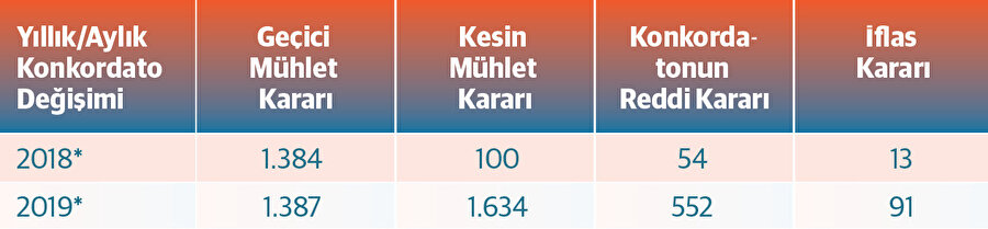 Diğer yandan bazı olumsuz durumlar neticesinde de konkordato sürecine son verilebilmektedir. Örneğin bazı beklenmedik gelişmelerden ötürü ya da işletmenin proje çerçevesinde beklenen geliri üretmesinin mümkün olmadığının ortaya çıkması halinde borçlunun mal varlığının korunması için iflasın gerekliliği yani komiser tarafından konkordatonun başarıya ulaşma imkanının kalmadığı anlaşıldığında, borçlunun konkordato sürecine aykırı davranışlarda bulunması durumunda veya borçlunun feragatıyla süreç sona erebilir. Özetle bu sonlandırma faaliyetleri durumun daha da kötüye gideceğinin anlaşılmasıyla devreye girer. Asıl amaç alacaklıların zarara uğratılmamasıdır. Süreçleri böylece açıkladıktan sonra biraz da rakamlara göz atacak olursak, konkordatonun iş ve finans dünyası açısından önemi daha kolay ortaya çıkacaktır. Daha önce belirttiğimiz üzere 2018 yılında hayatımıza giren konkordato kavramı özellikle 2018 yılının Temmuz ayında yaşanan Rahip Brunson Krizi sonrası ortaya çıkan kur krizinden etkilenen şirketlerin 2018 yılının sonunda başlayan ve 2019 yılının başından itibaren iyice sıklaşan başvurularıyla kamuoyunun önemli ölçüde dikkatini çekmiştir.