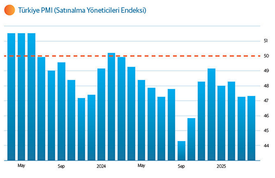 İşte bu kısıtlar ve sorunlar altında faaliyet göstermek zorunda kalan firmaların bir diğer sorunu da dış talep koşullarının bir türlü toparlanmamasıdır. Dolayısıyla hem içerideki hem de dışarıdaki koşullar işletmelerin ileriye dönük beklentilerini de olumsuz etkilemektedir. İmalat sanayiindeki gelişmeleri takip etmek için izlediğimiz ve büyümenin de öncü göstergelerinden birisi olarak kabul edilen PMI (Satınalma Yöneticileri Endeksi) son 22 aydır sadece bir kez eşik değeri aşmış onun dışında daralmaya işaret edecek şekilde oluşmuştur.