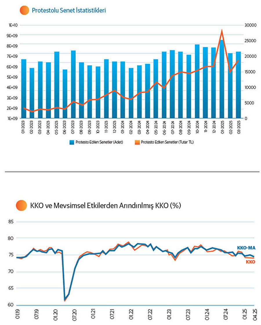 Diğer yandan yine finansmana erişim ve finansman maliyeti sorunu yüzünden piyasadaki karşılıksız çek ve protestolu senet tutarlarında da bir artış gözlemlenmektedir. İşletmelerin yaşadığı nakit sıkışıklığı ve alacak tahsilatındaki sorunlar neticesinde karşılıksız çek adetlerinde ve tutarlarında piyasa dengesini ve finansal istikrarı bozucu rakamlar oluşmaktadır.
