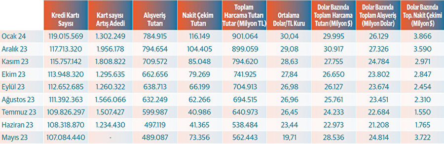 Üstelik ifade edildiği üzere 2023 Mayıs ayında aktif olan kredi kartı sayısı 107 milyon 84 bin adetken 2024 Ocak ayında bu rakam yüzde 11’lik artışla yaklaşık 12 milyon adede ulaşmış durumda.