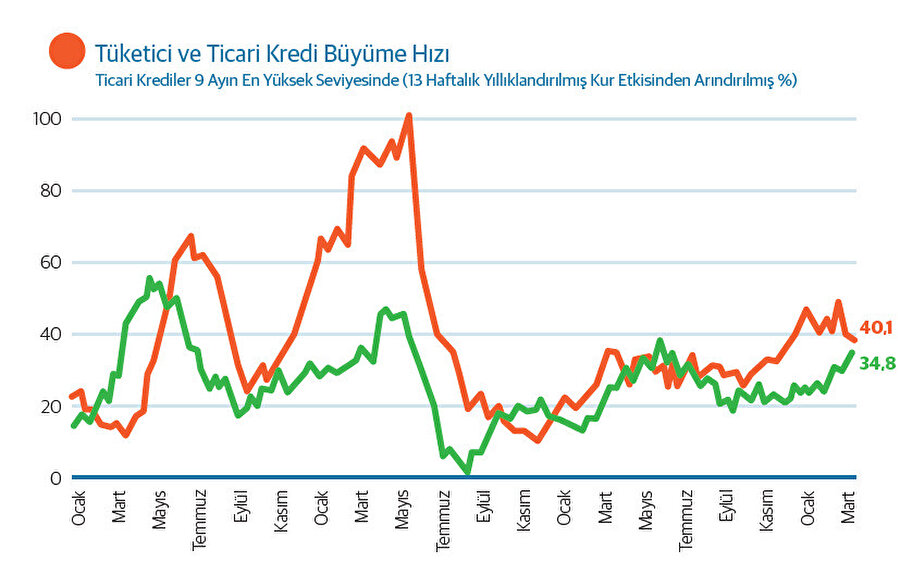 - Reel sektörün talebi, Merkez Bankası faizi düşerken ticari kredi faizlerinin de buna paralel şekilde politika faiziyle aynı seviyelere inmesi yönünde.