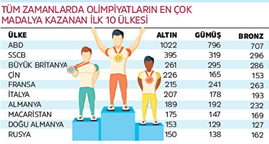 Rio'da düzenlenen Yaz Olimpiyat Oyunları ardında pek çok rekor bırakarak sona erdi. Usain Bolt, Michael Phelps, Simone Biles gibi sporcular şimdiden birer efsane niteliği kazandılar. İnsanoğlunun bedenen ulaşabileceği sınırları zorlayan sporcular, oyunların devam ettiği 15 gün boyunca yine olağanüstü performanslar sergilediler. Soğuk Savaş döneminde ABD ile SSCB'nin rekabetine dayalı olan olimpik rekabet, günümüzde, dünyamızın değişen siyasi ve ekonomik haritasını da yansıtacak şekilde değişmiş durumda. Sportif rekabette yeni oyuncu Çin. Aslında Çin'in bir süper güç olarak kabul edilmesinin kapısını açan gelişmelerden biri de olimpiyatlar olmuştu. 2008 Pekin Olimpiyatlarında, madalya sıralamasında ilk sıraya yerleşen Çin, rüştünü sportif olarak da ispat ederek, devler ligine resmen kabul edilmişti. Tüm zamanların Olimpiyat sıralamasına bakıldığında, ilk dörtte, 1022 altın madalya ile ABD birinci sırada, onu takiben 395 altın madalya ile SSCB, 261 altın madalya ile Büyük Britanya, 226 altın madalya ile Çin de dördüncü sırada. Mevcut tabloda bulunan ülkelerden Macaristan ve Doğu Almanya hariç hepsinin dünyanın önde gelen ekonomileri olduğu göze çarpmakta. ABD, üst üste ikinci kez ve toplamda 17'nci kez birinci sırada yer almakta.