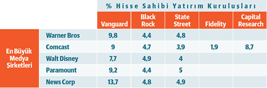 Vanguard, Black Rock, State Street, Fidelity, Newyork Mellon, JP Morgan, Morgan Stanley, Goldman Sachs, Capital Research gibi küresel çapta yatırım bankacılığı yapan şirketler toplamda 30 trilyon dolardan fazla parayı yönetiyor. Enerji, savunma, sağlık ve gıda gibi temel alanlarda tekel konumuna gelmiş markaları da içine alan örümcek ağının küresel ekonomideki büyüklüğü bazı hesaplamalara göre yüzde 85.