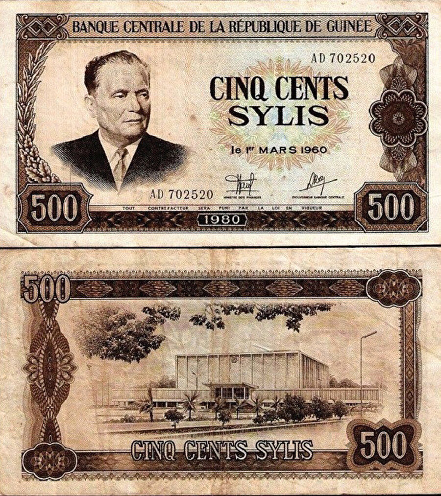 Her ülke parasında kendi liderinin fotoğrafını kullanırken, tarihte yabancı bir liderin portresi sadece Gine parasında kullanıldı. Gine Hükümeti’nin aldığı kararla, 1980 yılında piyasaya sürülen 500 Sylıs’ın üzerinde, yaptığı yardımlardan dolayı Yugoslavya Devlet Başkanı Tito’nun portresi kullanıldı.