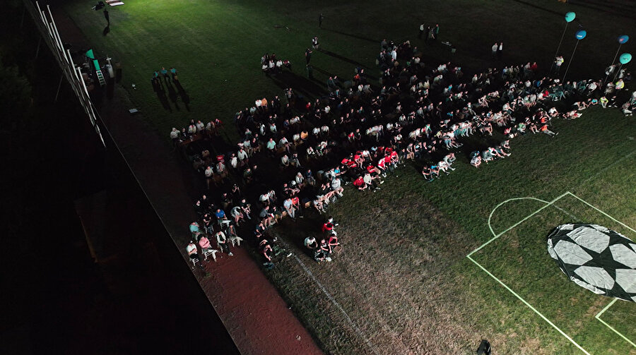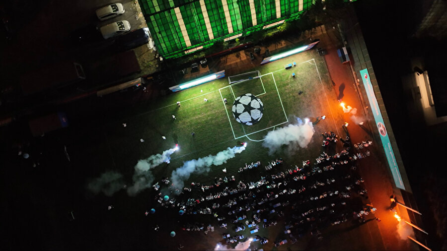 Yüzlerce ziyaretçi, kurulan ekranlarda maçı takip etti. Mücadele başlarken yapılan meşale şov ve tıpkı final sahasındaymış gibi Şampiyonlar Ligi logosunun yer aldığı flamanın sallanması heyecanlı anlara sahne oldu.