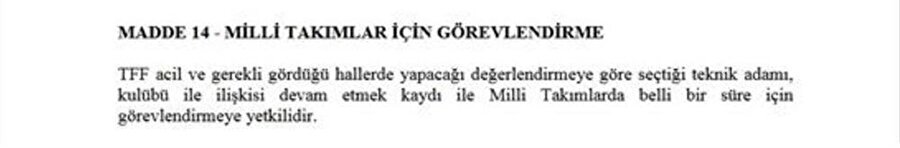 Teknik adamların statüsü ve çalışma talimatının ilgili ‘Milli Takımlar için görevlendirme” başlıklı 14. maddesine göre; Türkiye Futbol Federasyonu, Beşiktaş ile görüşmeden ve sormadan Şenol Güneş’i geçici olarak göreve getirme yetkisine sahip.
