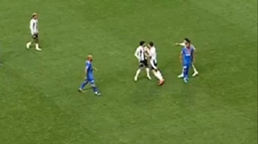 Yaşanan gerginlik hakem ve takım arkadaşlarının araya girmesiyle noktalandı.