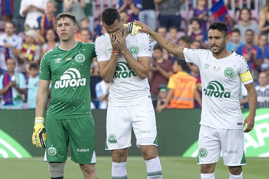 Alan Ruschel ve Helio Neto ile kazadan kurtulan ancak sağ bacağını kaybeden kaleci Jackson Follmann, maçın başlama düdüğü öncesi duygusal anlar yaşadı. Chapecoense kaptanı Ruschel, oyundan çıktığı 36. dakikada da gözyaşlarına hakim olamadı.