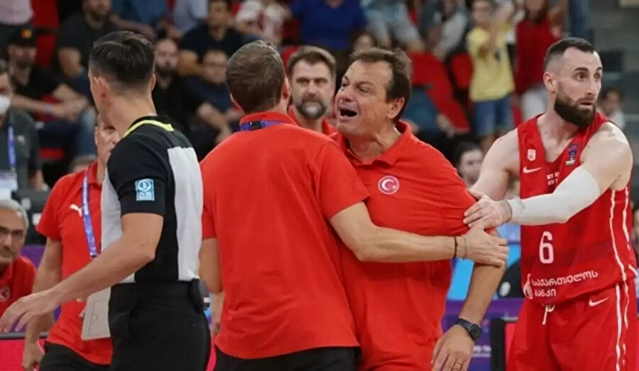 “22 saniye için gerekli hukuki itirazımızı yaptık. Bunlar, kural hatasına giriyor. Maç oynanırken yaptık, bizi püskürttüler masadan. Maç bitiminde direkt itiraz ettik. Öylesine çağ dışı bir organizasyonla karşı karşıyayız ki, dünle de birlikte skandal ortaya çıktı. Shengelia, Bitadze ve atılan oyuncu, Furkan'a direkt saldırıda bulunuyor. Kondisyonerimiz darbe alıyor, yere düşüyor. Furkan'ı koç odasına saklıyorlar. Bu büyük bir saçmalık. Olay koridorda, bizim haberimiz yok, maçın içindeyiz.”