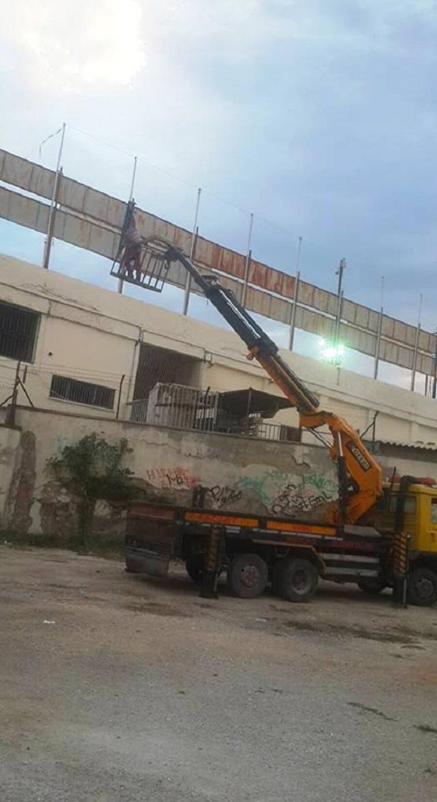 Denizlispor amigosu Ali Demirkaya'nın vinç üzerinden maçı izlediği fotoğraf sosyal medyada günün konusu oldu. Demirkaya geçen sezon 1 yıl maçlara girememe cezası almıştı.