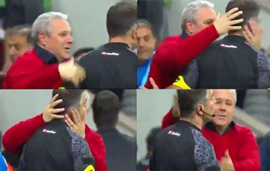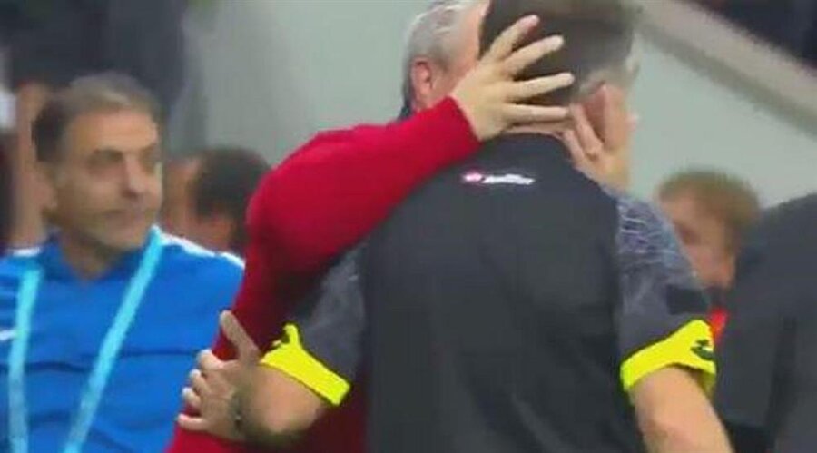 Sevinçle önce futbolcularına sarılan ve Jean Armel Kana Biyik'i öpen Rumen teknik direktör Marius Sumudica, hızını alamayarak hakem Ali Palabıyık'ın maçta yardımcılığını yapan Kıdemli Yardımcı Hakem Kemal Yılmaz'ı da öptü.