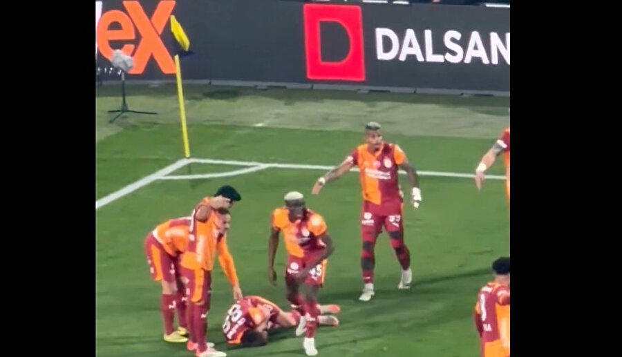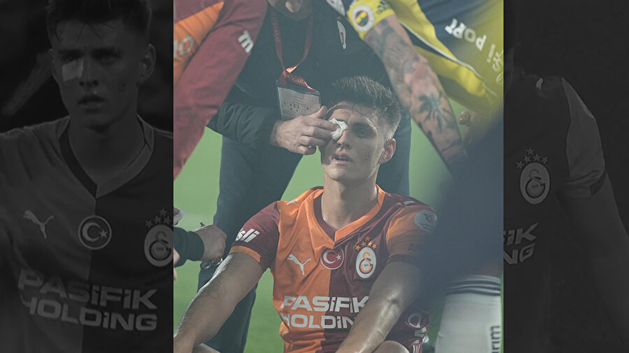 O anlarda yerde kalan Kazımcan'a sağlık ekipleri müdahale etti. Oyuncunun gözünün altına bant yapıştırıldı.