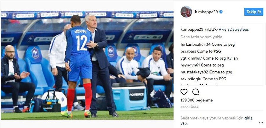 PSG'nin uzun süredir kadrosuna katmak için uğraş verdiği Kylian Mbappe'nin sosyal medya hesabına dadanan taraftarlar, transferin gerçekleşmesi için bu sefer 'Come to PSG' paylaşımları yaptı.
