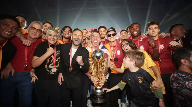 - "İnanılmaz bir ortam, tüylerim diken diken. Allah'a şükürler olsun. Hem bana, hem Galatasaray'a bu kadar güzel insanların olduğu takım izletiyor. Onlarla gurur duyuyorum. 5. yıldızı tamamladık, hedefimiz seneye tekrar şampiyon olmak. Oyuncularla, camia ile gurur duyuyorum. Allah'a şükürler olsun. Hedefimiz gelecek sezon yine şampiyon olmak! Oyuncu olarak 4 şampiyonluk yaşadım, şimdi hedefim teknik direktör olarak 4 şampiyonluk yaşamak."