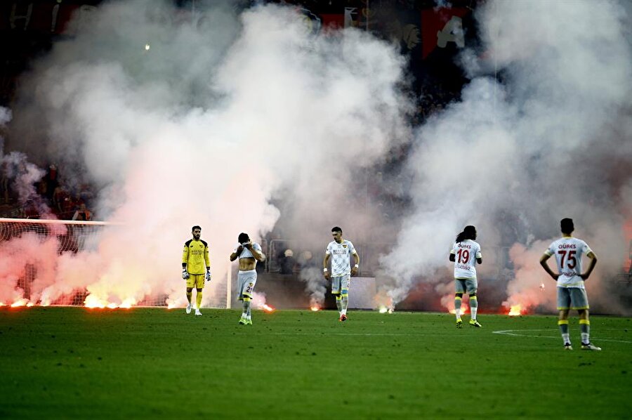 Tribünlerin damga vurduğu Karşılaşmanın ilk yarısında maç, tribünlerden atılan meşaleler nedeniyle 3 kez durdu.