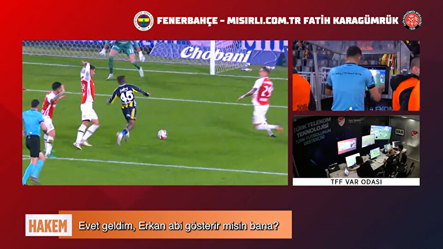 Fenerbahçe - Fatih Karagümrük maçının 19. dakikasında Dorgeles Nene, çalımlarla ceza sahasına girerken yerde kaldı. Hakem Ali Şansalan, penaltı yok diyerek korneri gösterdi. VAR’ın ‘potansiyel penaltı için sahada inceleme’ önerisi sonrası Şansalan kenara geldi.